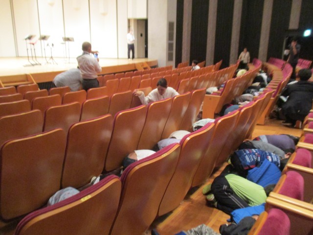 公演中に災害が起きたことを想定した訓練では、係の方の指示を真剣に聞き、身を守る行動や速やかな避難ができ、貴重な体験となりました。
