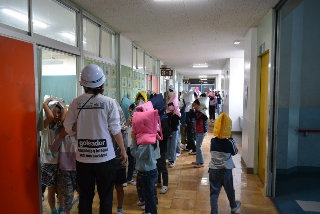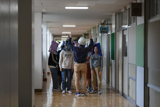 毎年、起震車「ぐらっと君」に来てもらい、揺れの体験をしながらの訓練ですが、今年は雨のため校庭避難のみの訓練となりました。地震を想定して、スムーズに避難することができました。