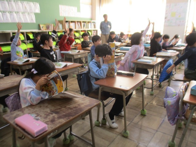 国語「スイミー」の授業です。音読が上手にできるようになりました。授業中もたくさん手が挙がります。