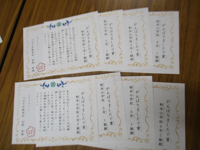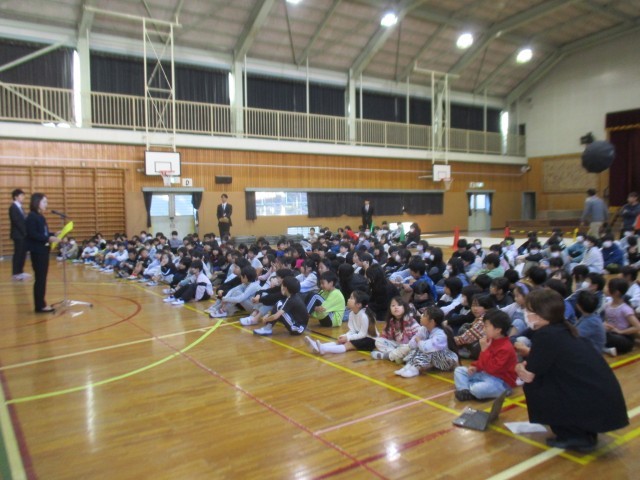 朝会で、「開校記念日」「運動会の保護者からの励ましの言葉」「もったいない大作戦表彰」の話をしました。