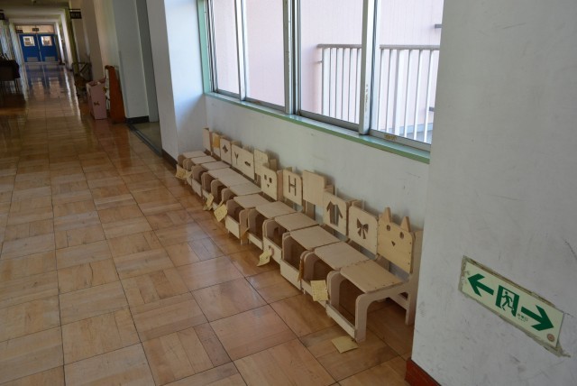 その下には書道の作品や、「道は自分できりひらく」として手形に目標を書いた掲示物も貼ってあります。
