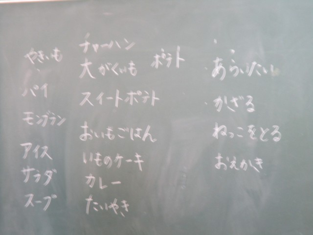 教室に戻り、掘ったサツマイモをどうするか、みんなで意見を出し合いました。「じゃあ誰が料理するの?」という担任の問いかけに一瞬顔を見合わせた後、みんなの手があがり…。児童が調理することはありませんが、今後の活動が楽しみです。