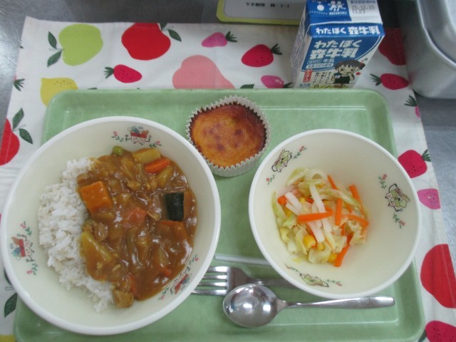 カレーライスにはいっているかぼちゃは八王子産の有機栽培で作ったカボチャです。