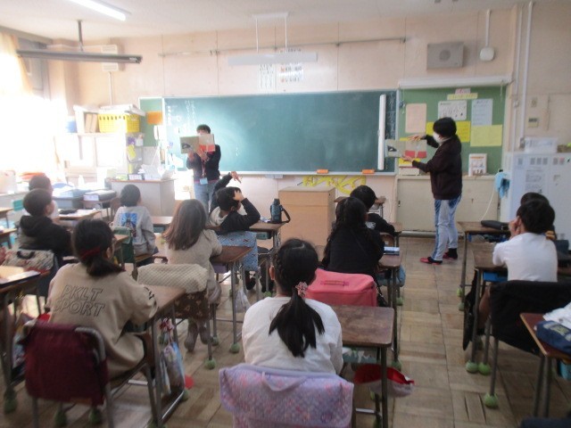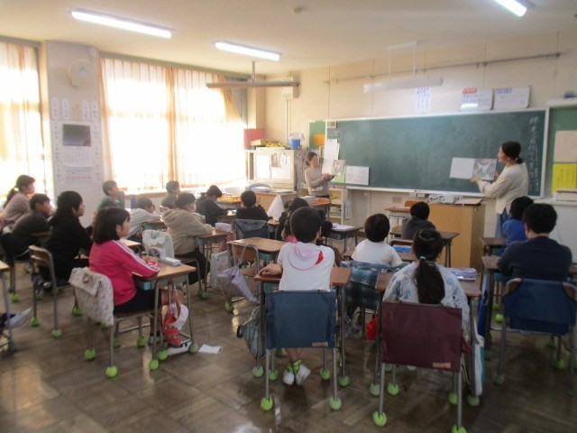 読書週間中に図書ボランティアによる読み聞かせが、朝学習の時間に各クラスで行われました。