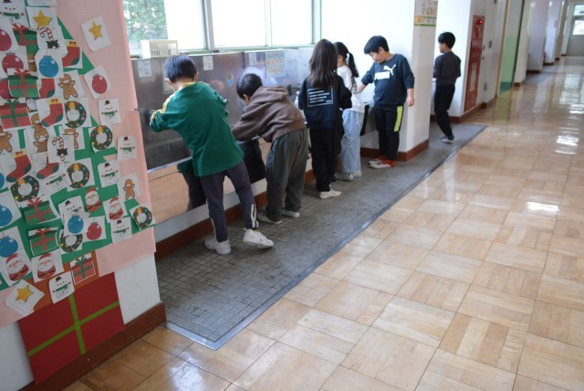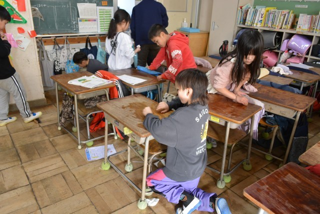 机をみがき、壁をみがき、黒板をふいて・・・えっこんな狭いところも!?