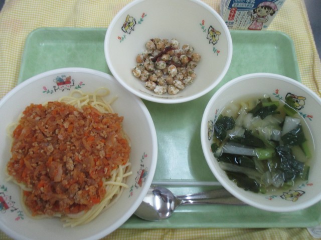 今日は野菜350gの日です。柏木小学校では、学校の地域の畑でとれた白菜と大根をつかいます。