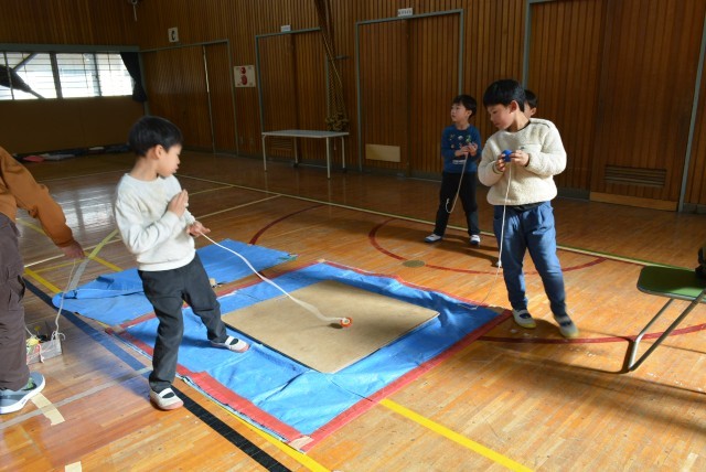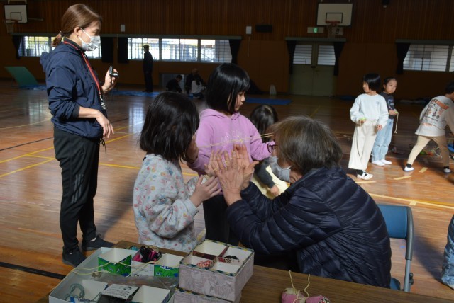駒・お手玉・あやとり・羽子板・輪投げ・だるま落としのブースをまわり、コツを教わりながら楽しく遊ぶことができました。