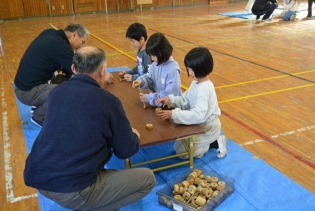 柚子の実会の方が、1年生に昔遊びを教えてくれました。