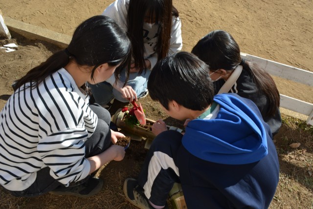 初めて苗を触る児童が多く、ポットから出すだけでも苦戦していました。