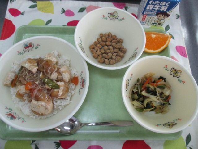 新しい教室で2日目の給食、昨日は残りも少なく楽しそうに食べていました。
