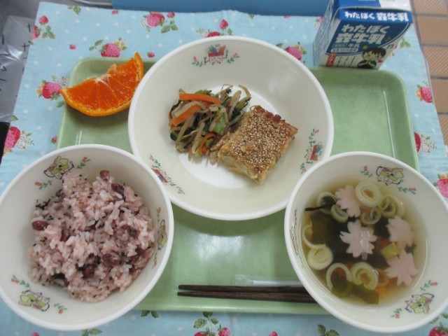 お赤飯・お祝いすまし汁おいしい松風焼をいただきます。