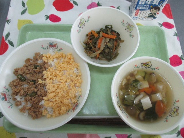 きょうはお皿にごはんをついで、どんぶりごはんにしていただきます。