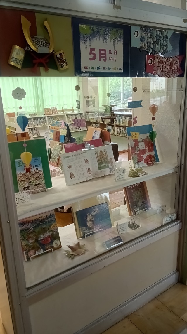 図書ボランティアの方から、5月に合わせた掲示をしていただきました。