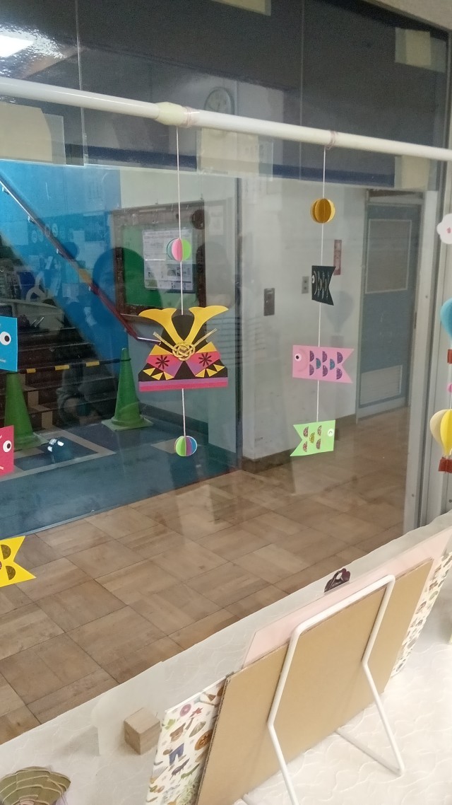かぶと飾りや鯉のぼりが並んでいます。