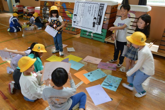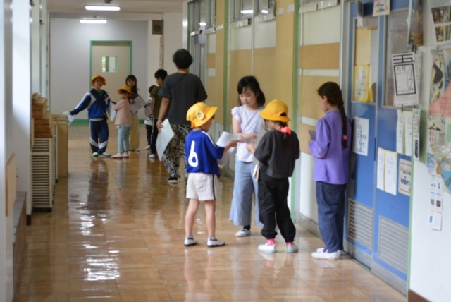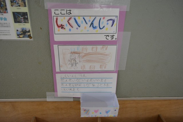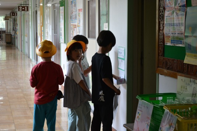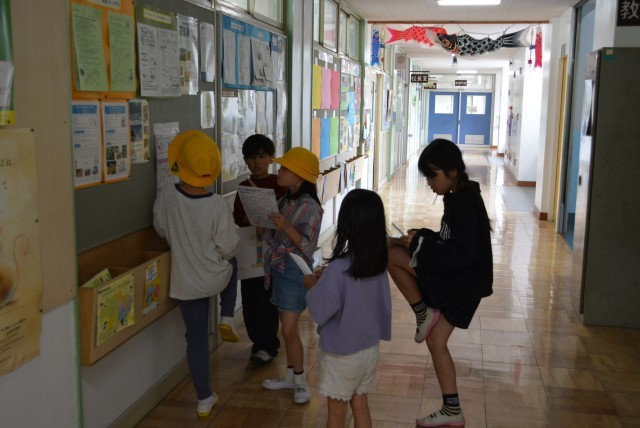 2年生は探検用の説明カードを作り、シール箱も設置しました。