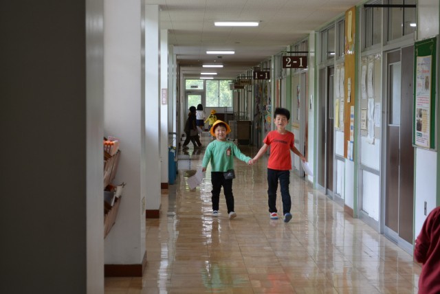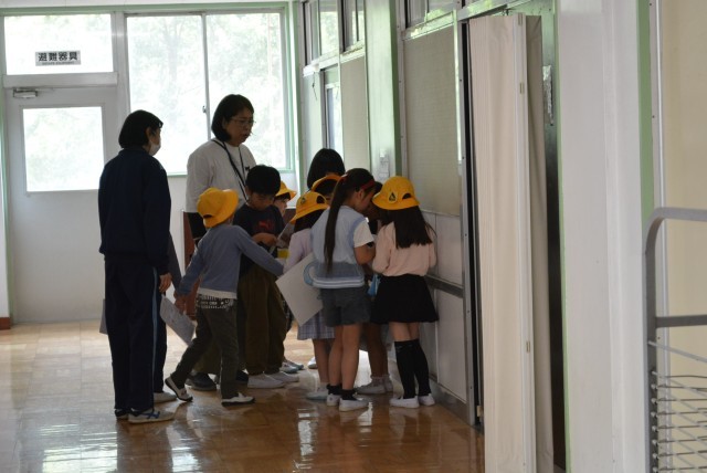 はりきって案内する2年生と、お兄さんお姉さんに連れられて嬉しそうな1年生。