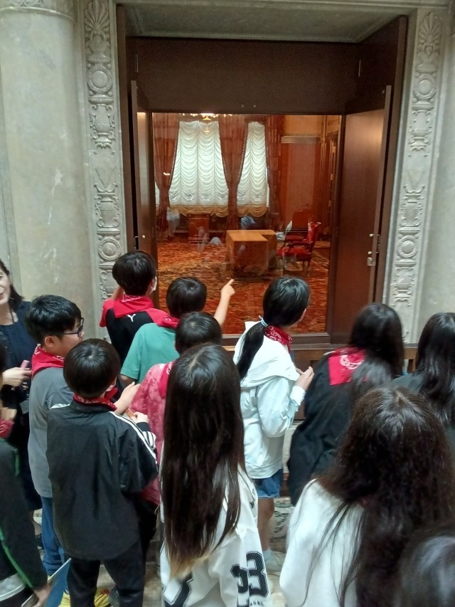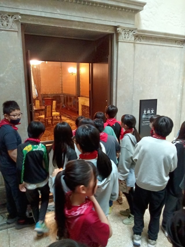 御休所や中央広間の像、本会議場を見学しました。