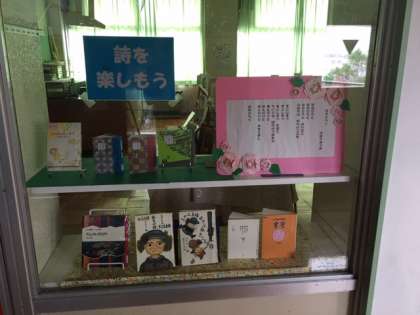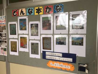 図書室前の廊下です。まだ貸し出しは始まっていませんが、準備は、進んでいます。