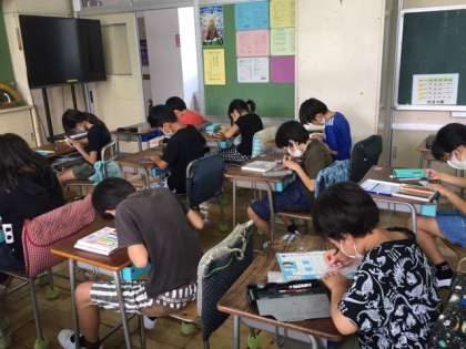算数のテストの後に名札づくりをしました。さて、テストの結果はどうでしょう…楽しみです。