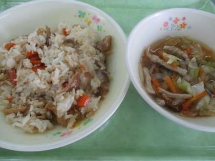 23日のこんだては、 ・しょうがまぜごはん ・くずきりスープ ・牛乳 です。