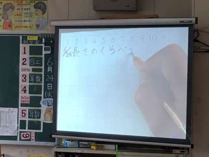 算数です。授業の前に落とし物の紹介がありました。長さの学習が始まります。
