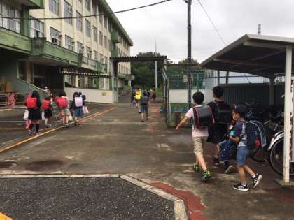 元気に登校です。