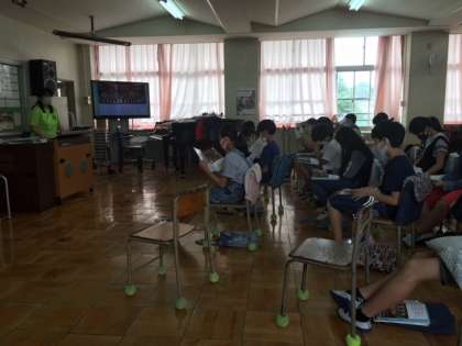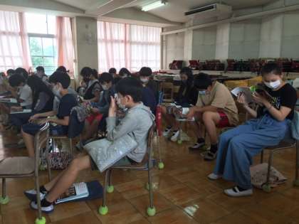 音楽です。これから曲を聴いて、一人一人感想をもちます。