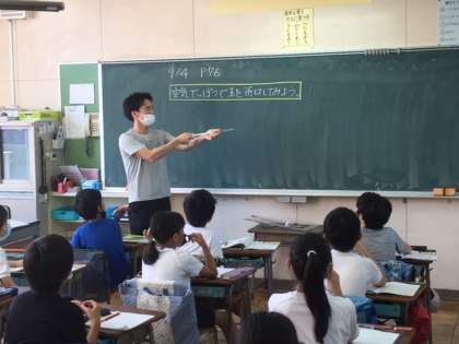 理科でした。空気でっぽうの学習でした。なぜ、玉が飛ぶのかを考えました。