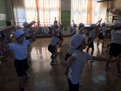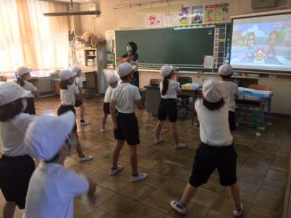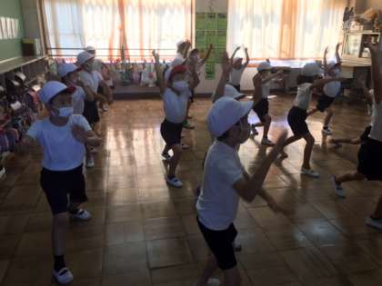 教室で運動会の演技の説明がありました。踊ります。