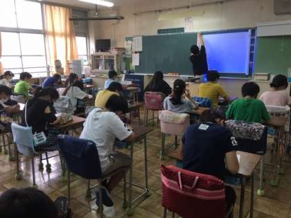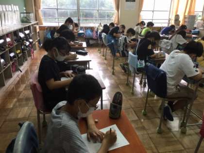 国語です。始めに漢字のテストがありました。さすが6年生です。勉強モードです。