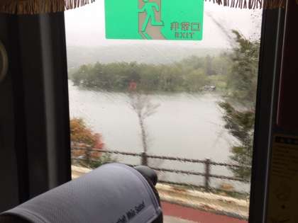標高1420mの白樺湖まで来ました。雨が降ってきました。