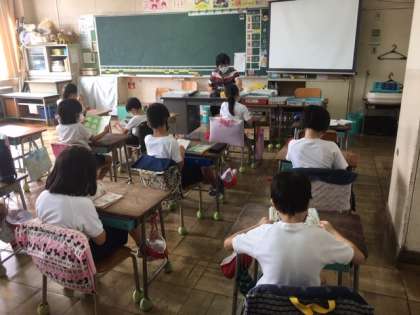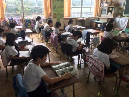 国語です。作文を書く時間でした。終わった子は、読書になっています。