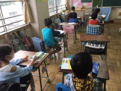 1時間目が体育でした。少し遅れて始まりました。国語です。