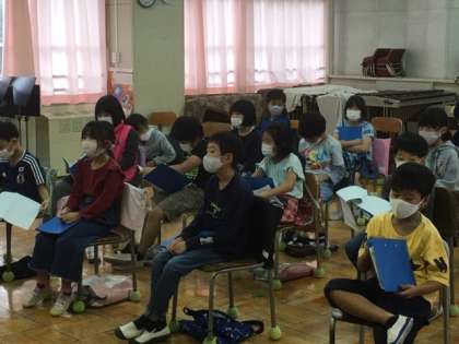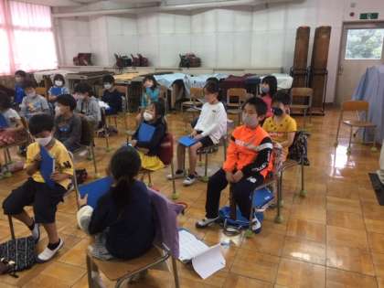 音楽です。マスクをつけたまま、歌を歌います。