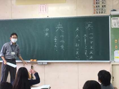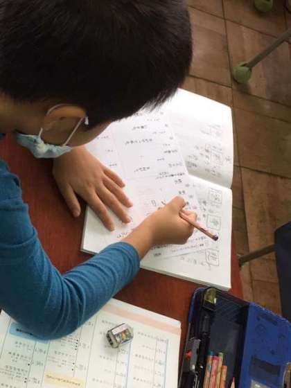 国語です。漢字を頑張ります。「寒」「央」を習いました。