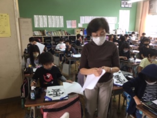 国語です。毛筆の学習に取り組みました。