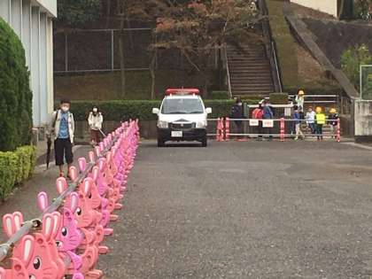 曇り空の下、元気に登校です。