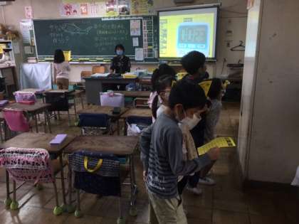 算数です。かけ算を大きな声で覚えます。