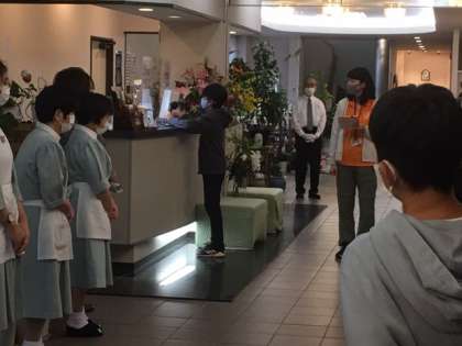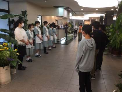 閉校式です。室長が代表してロビーに集まり、お礼を述べました。