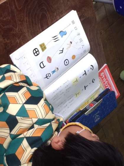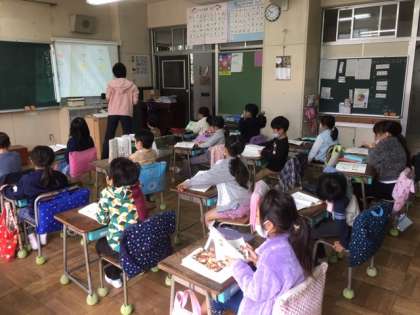 国語です。山、木、月などの字の成り立ちも考えました。