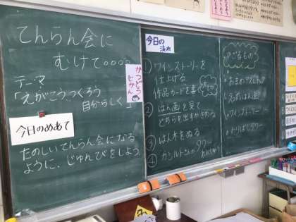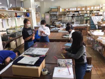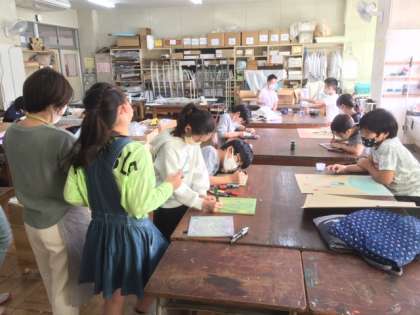図工です。展覧会に向けて頑張っています。
