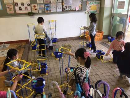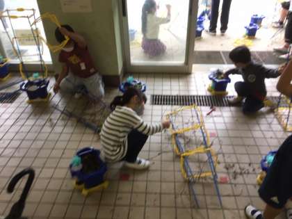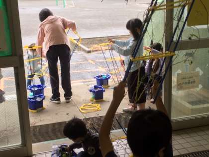 生活科です。朝顔の栽培が終わり、ツルを外します。