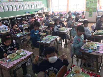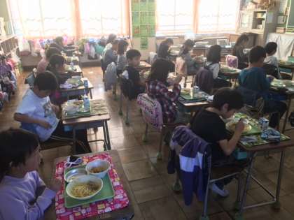 お昼の放送を聞きながら食べます。
