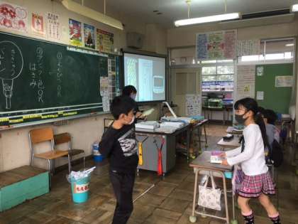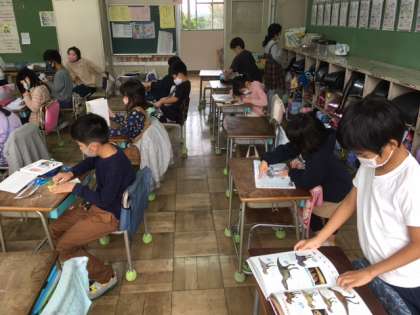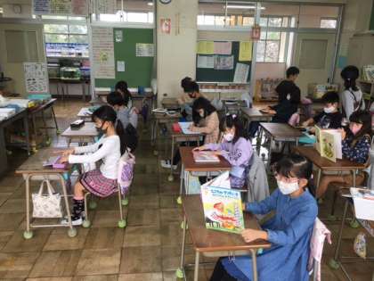 国語です。きれいになふだを書いています。終わった人から読書です。
