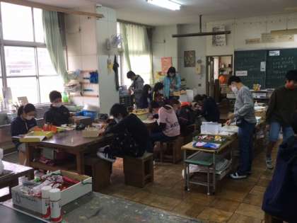図工です。展覧会に向けてがんばります。