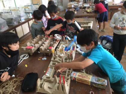 図工です。相談しながら作品を仕上げます。