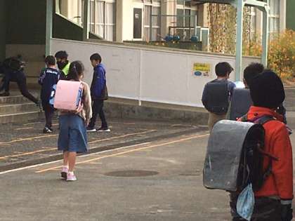 寒くなりましたが、元気に登校です。