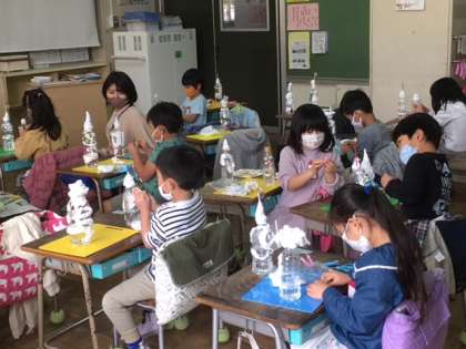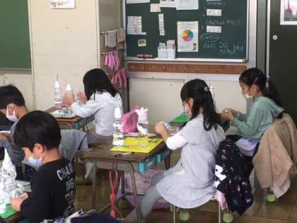 図工です。ボトルキャッスルをつくります。