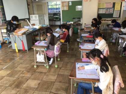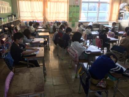 国語です。静かにテストを頑張ります。