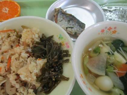 今日のこんだては、「七五三」にちなんでそれぞれの数字がついた料理です。しっかり食べましょう!